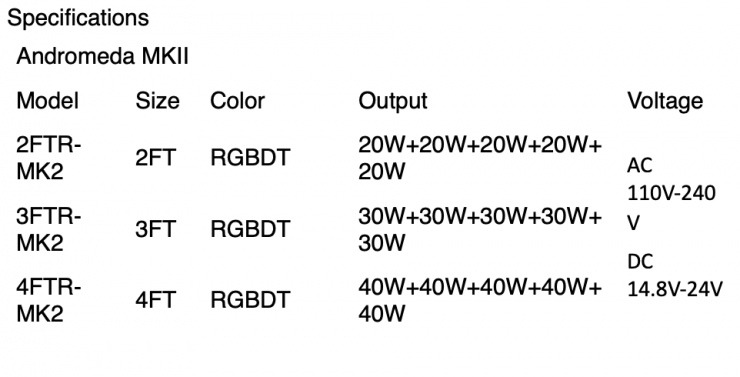 - Single 4′ Andromeda MKII LED Tube Light Kit $488 USD