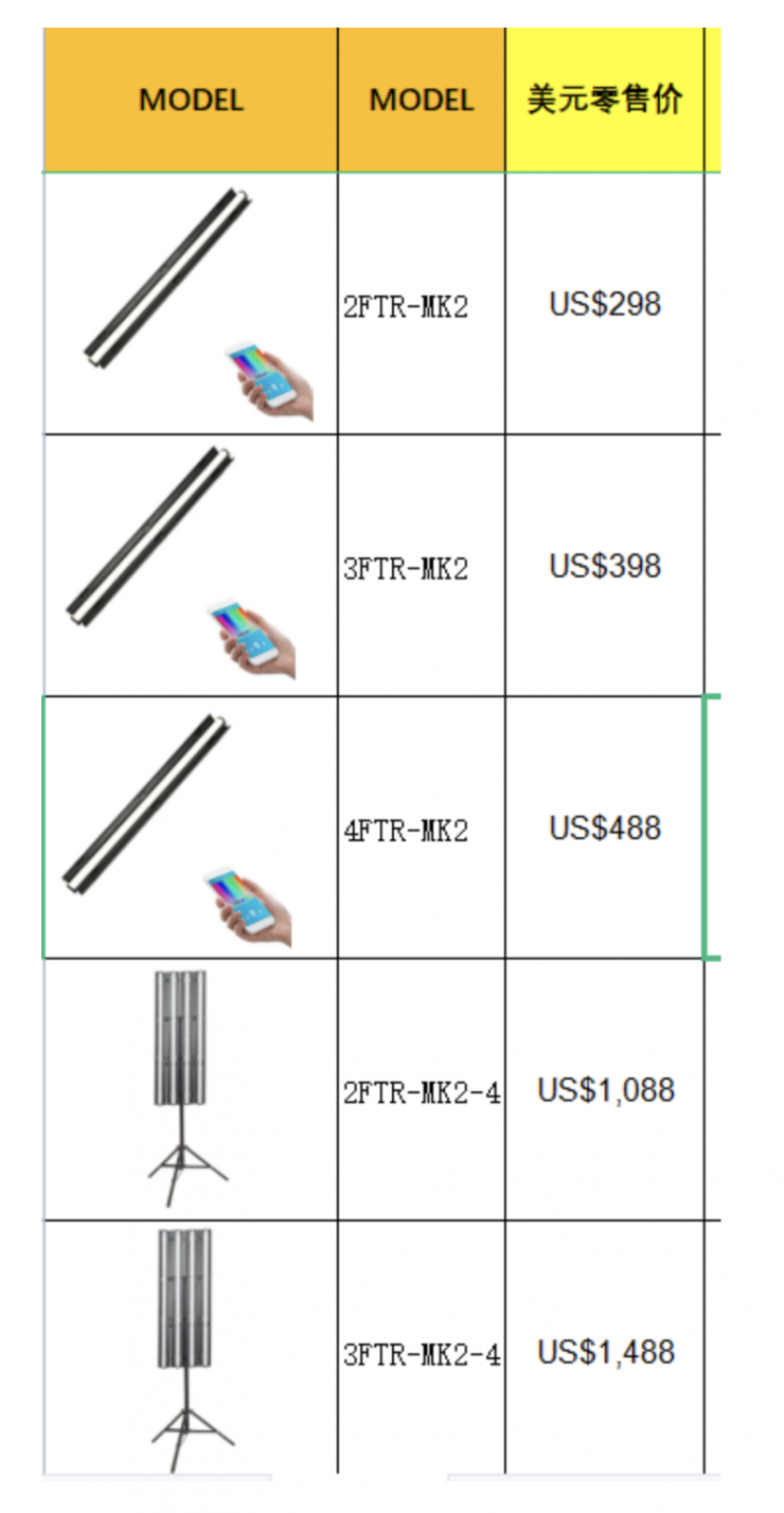 The tube lights are CCT adjustable from 2000-10,000K and they feature full HSI functionality.