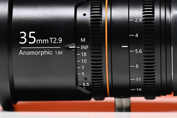 The lens also features a close focusing distance of 2.35′ / 0.70 m. This is pretty good for a 1.8x 35mm anamorphic and it is the same as the 50mm 1.8x T2.9.