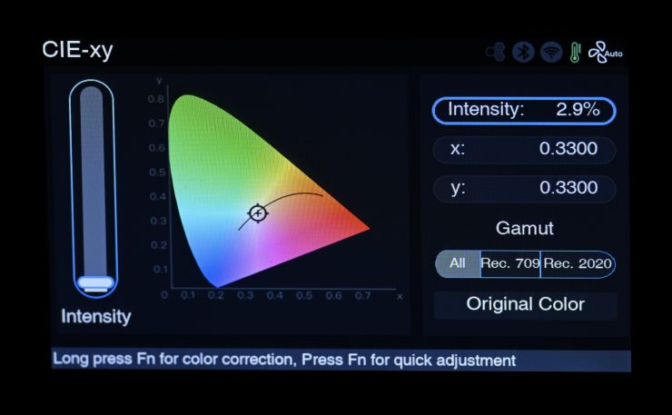 * Added x,y coordinate references in other modes so you can easily replicate a color accurately. (To do this you move the cursor to the xy coordinates, and press the button, you will see the color shown in a CIE-xy 1931 color space). The adjusted colors can be further saved to presets, both for color correction and xy correction.