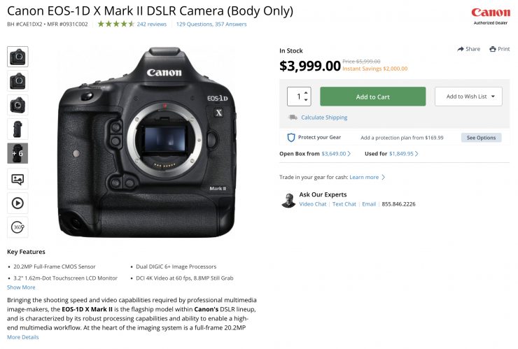 The Canon EOS-1D X mark II is on sale for $3,999 USD which is a saving of $2,000 USD.