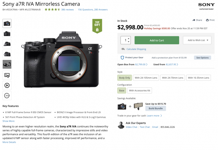 The Sony a7R IV is on sale till midnight on the 20th of November for $2,998 USD which is a saving of $500 USD.
