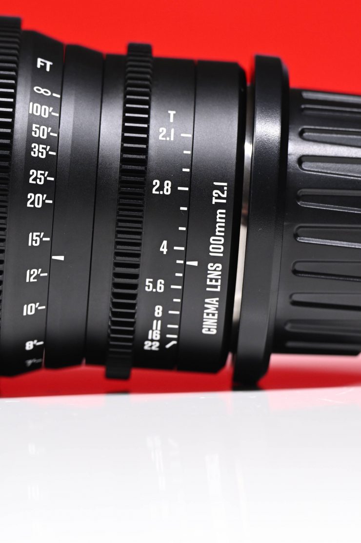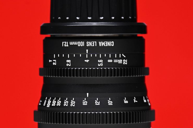 The issue I find when reviewing more affordable cine lenses is that the build quality is never consistent between the focal lengths. In this case, the build quality of the 100mm is better than that of the 35mm T2.1 that I previously reviewed. With the 35mm T2.1, the focus ring had noticeably more friction when moving toward infinity than when it is moved back toward its minimum focus distance.