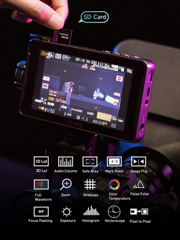 You can load up 3D LUTs via an SD card and the monitors have the usual array of video assist monitoring tools.