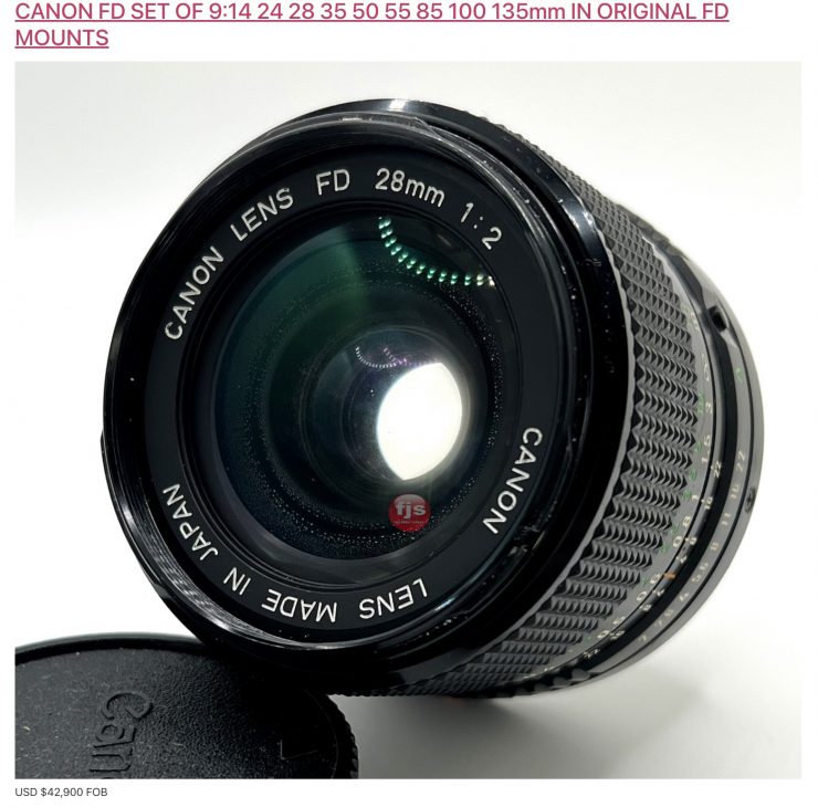 Above is a single Canon FD 24mm F1.4 listed for $13,900 USD.