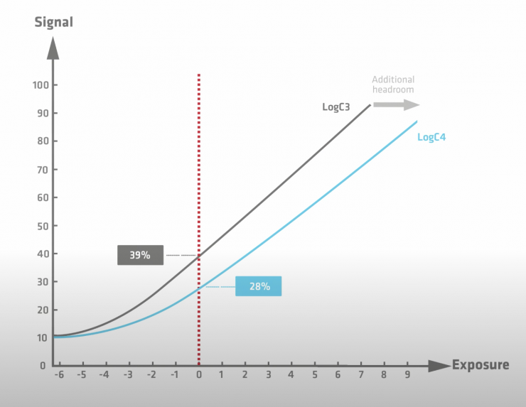 In the ALEXA 35, an encoding limit in LogC4 is reached when the EI is above 3200. When the maximum value of the LogC4 function becomes greater than 1, it can’t be encoded in a 12 or 16-bit integer number. This means that no tonal value higher than 11 1/3 stops above mid-gray can