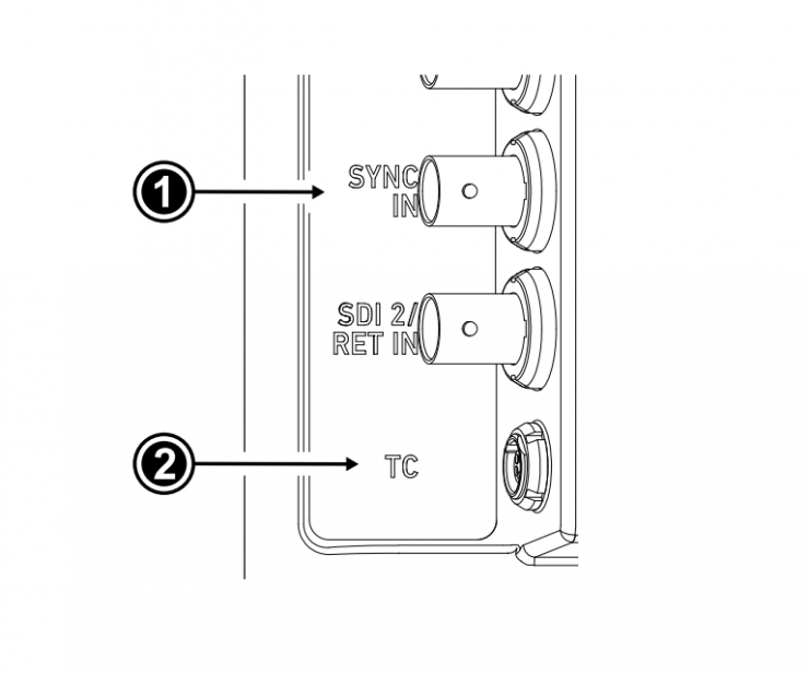 | Image Outputs | VF 1: First viewfinder connector VF 2 Second viewfinder connector SDI 1 Completely independent (1.5G, 3G, 6G, or 12G) SYNC IN Genlock: analog black burst or tri-level SDI 2/RET IN Completely independent (1.5G, 3G, 6G, or 12G) or return in (1.5G or 3G) |