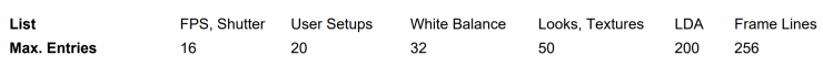 | Lens Squeeze Factors | 1.00 1.25 1.30 1.50 1.65 1.80 2.00 |