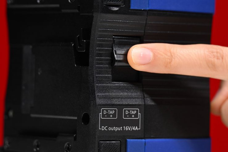 I did find it a little strange that the D-tap ports are located on the left-hand side of the battery. It would have made more sense to have placed them on the right-hand side as that keeps them out of the way of the operator.