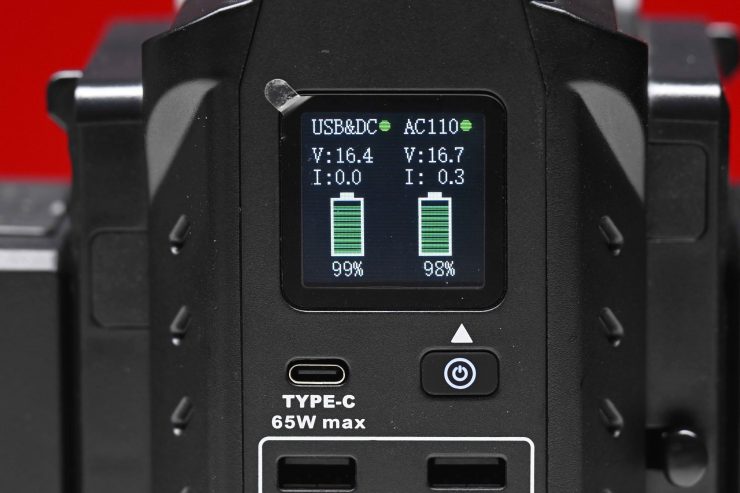 I like that you can put any sized V-lock battery on the power station. I was running it with a SWIT PB-C420S 420Wh battery and in an emergency or other situation where you don’t have access to mains power you can power devices for long periods of time.