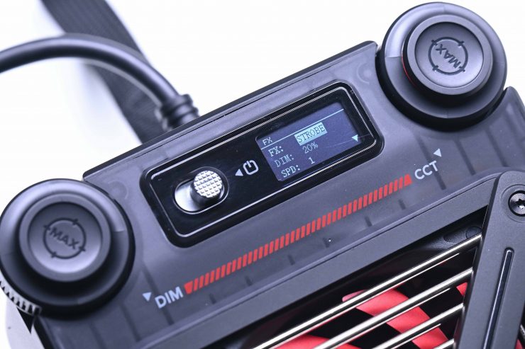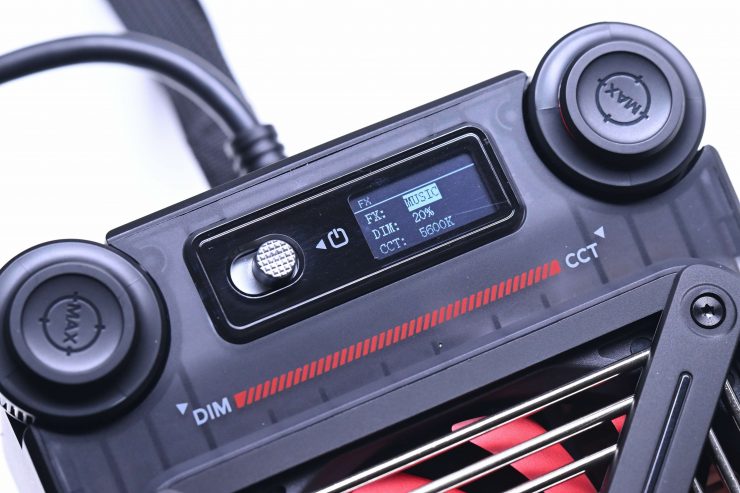 By pressing both the color temp and brightness dials you can activate MAX Extreme mode. In this mode you get an increased output of 60% (500W). The catch with this mode, according to ZHIYUN, is that the light only works at 4300K and it will only work in this mode for a certain period of time (depending on the ambient temperature). ZHIYUN doesn’t list how long the light will run in this mode. I will test this out further down in the review.