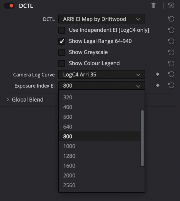 Unified Exposure Index (160–6400): Select any EI from 160 to 6400 with a single “Unified EI” slider. For LogC4 users, an optional “Use Independent EI” mode locks to EI 400 for consistent highlight and shadow zones.