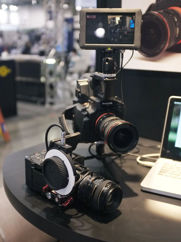 Erik Widding of Birger Engineering demonstrates the latest working prototype of his Canon EOS to Micro 4/3 and Sony NEX adapters. Widding claims they provide full control of focus and aperture on all tested EOS lenses. He also showed a working prototype of a follow focus controller that works with the adapter and allows for rapid calibration and lens changes. Widding also said he expected shipping to begin in May.
