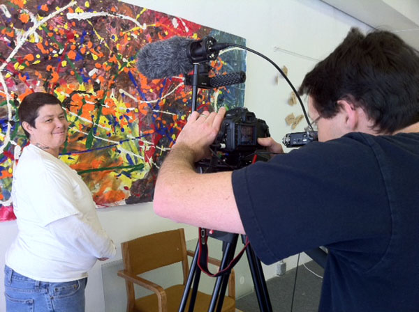 The camera’s shortcomings are well known. I record sound from a shotgun mike and a lavaliere onto a Tascam DR-100 then send the sound back into the camera with a downpad cord. Of course I am also working with a radio reporter so she records her own sound and we synch everything up in post. The biggest issue for me is the 12 minute clip length. We recorded hours of interviews and 12 minutes in an interview flies past, particularly when I’m paying attention to what the subject is saying and what the next question should be.