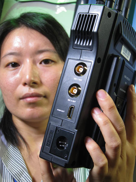 They also showed a pair of wireless HD transmission systems, one with a claimed 50m range, the other 150m, the cheaper of the two is supposed to retail at around $5000 US I was told. These are mountable on a broadcast camera and have SDI and HDMI connections. You can supply the transmitter with HDMI and the receiver would put the signal out as SDI to your sat truck or video village – great for cameras like the Sony FS100 in a ‘live’ scenario as it only outputs HDMI.