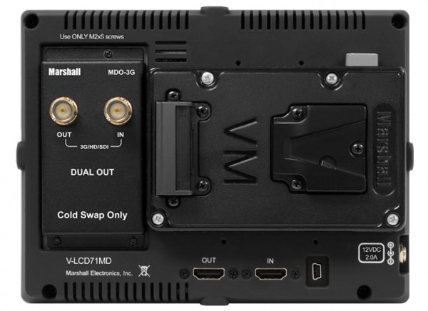 Marshall’s new V-LCD71MD is a 7 inch camera top monitor with a 1920×1080 resolution and a contrast ration of 800:1. The display is of the backlit IPS LED variety. It features Marshall’s modular input and output system so it capable of HD-SDI as well as HDMI with the correct adapter.