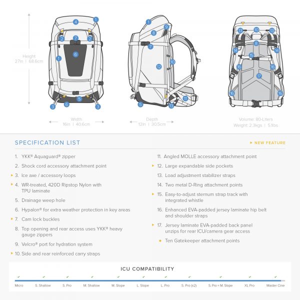 Enter the Shinn backpack with Master Cine ICU. The giant 80L bag is designed specially for cinema cameras. F-Stop claim it can carry a built-up Red Dragon camera kit and it should also be able to handle C300 and F5 kits with ease. My only concern is the depth of the bag and whether bulky jackpacks and EVFs can be accommodated without having to be detached.