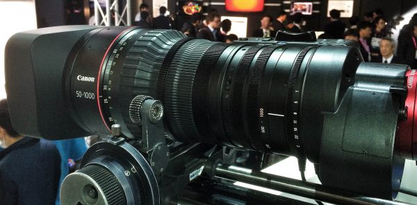 At Inter BEE in Tokyo today Canon were showing there new 50-1000mm cine servo zoom lens that they announced in October. Not only does it feature a highly impressive 20x zoom but it also has a built-in 1.5x range extender taking the maximum focal length up to a whopping 1500mm. If you paired this lens on a Sony F5/55 and engaged the 2x centre crop mode (a HD crop from the centre of the 4K imager) you would be looking at something approaching 4500mm full-frame equivalent!