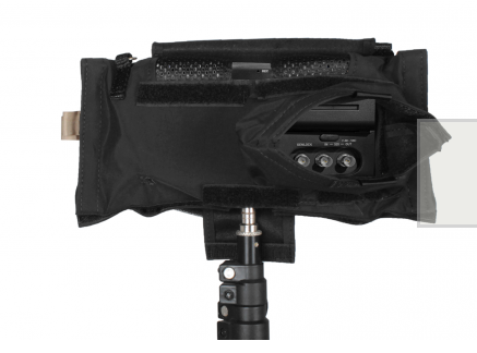 Side openings provide access to cables and form a tight seal with Velcro® to help prevent rain and dust from reaching the recorder.