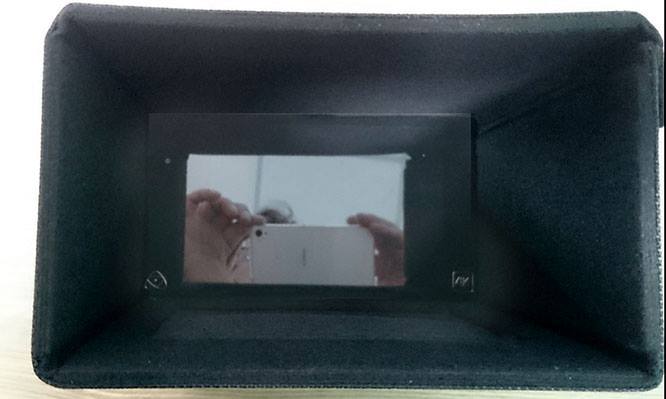 The second part is a plastic reinforced Velvet hood that velcroes to the small hood. It splits open easily to make the touch screen easy to use. If you use a tablet stylus you don’t need to pop the bottom of this hood open. You can put your face right up to the hood and squeeze it to shape it so there is very little outside light let in, great for critical focus.