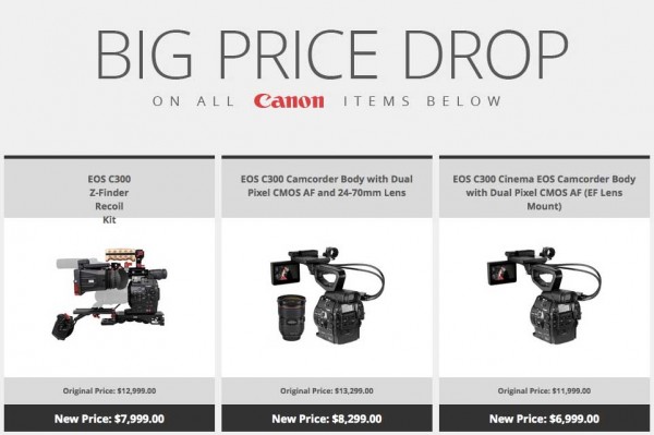 In what is surely a sign that new cinema EOS cameras are on the way, B+H have today announced a massive price drop on the Canon C300. All flavours of the camera have been reduced. You can now get the standard C300 in EF for $6499 and the Dual-Pixel CMOS AF or PL versions of the camera for only $6999.