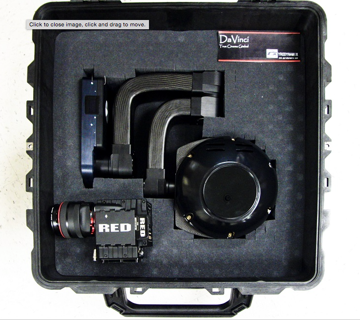 The team at AES has created the DaVinci high performance three-axis gimbal to serve the professional market and enable a complete aerial platform for the Red Epic that complies with the FAA 55b (24.9kg) weight limit.