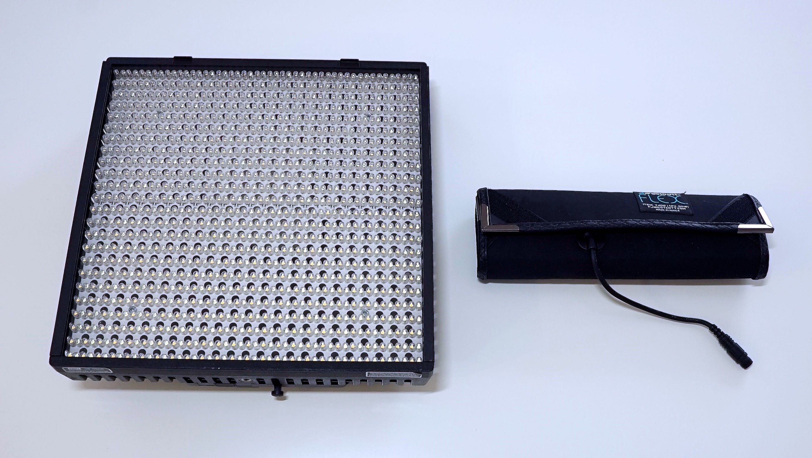 Westcott Lighting is the exclusive North American and Australian distribution of this new cutting-edge LED technology. The fully-bendable Westcott Flex features a 10” x 10” surface lined with 256 LED diodes and outlined with a moldable, quarter-inch, black frame and weighs in at just 5.29 oz. Its compact design allows it to be easily hidden on-set or location and allows for easy travel. A dimmer comes standard with each Flex to adjust output from 5% to 100% for precise control. A flexible mounting bracket and water-resistant extension cable are also available for mounting in any environment. The whole kit takes only a couple of minutes to assemble.