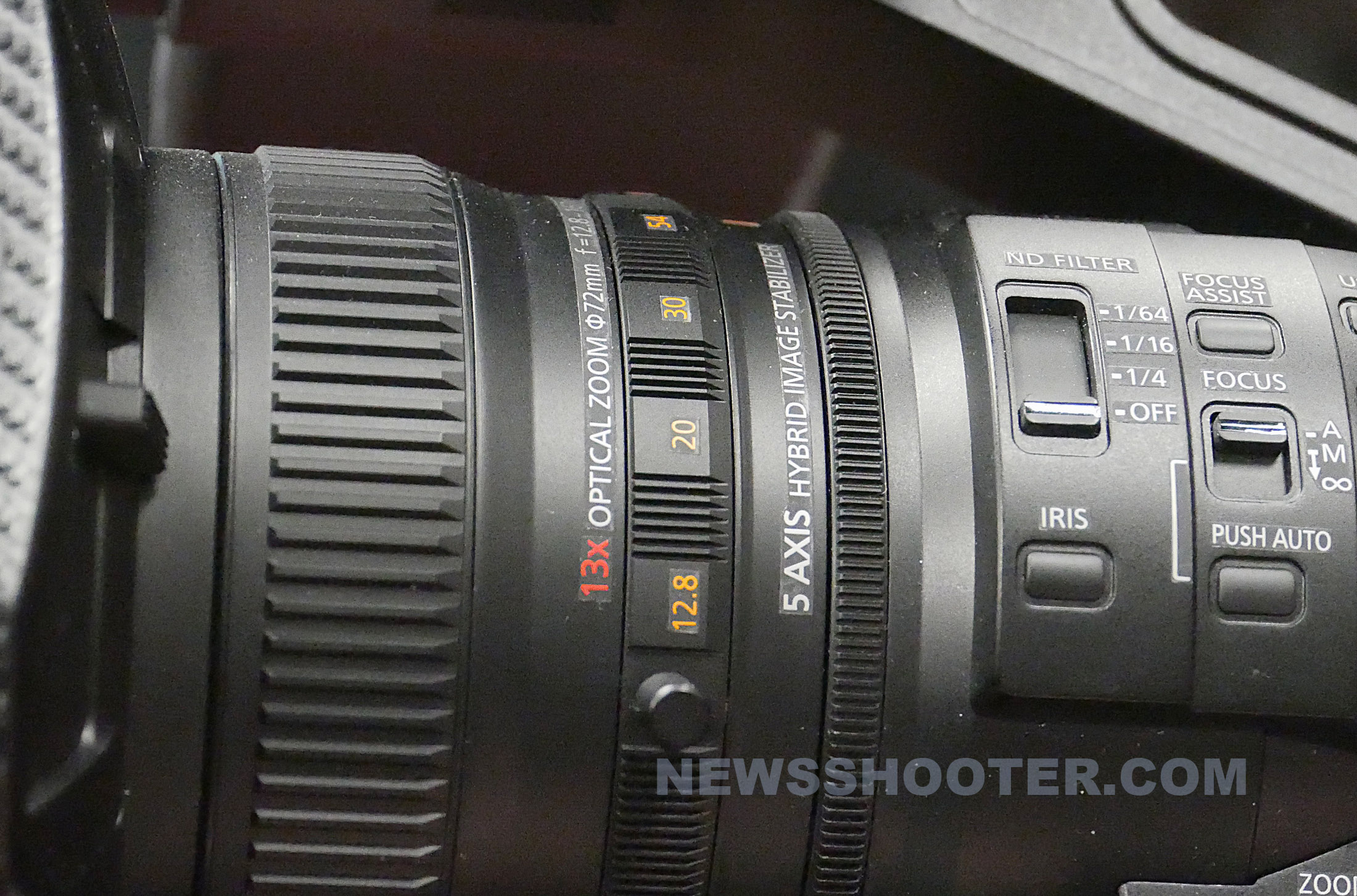 Panasonic announced the 4K successor to the venerable DVX100 at NAB today. The AG-DVX200 is a 4K, handheld camera with a 13X image stabilized lens and a 4/3″ sensor. It has 4K/60P recording on SD cards with Varicam-like V-Log L gamma curve with 12 stops of latitude. The lens is a f/2.8-4.5, 28-365mm equivalent zoom with separate zoom, focus, and aperture rings.