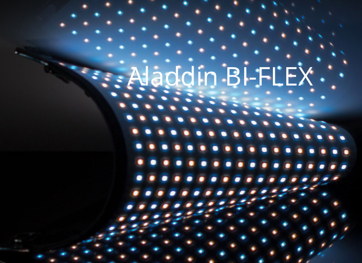 We first saw the Aladdin Flex lights at IBC last year. The product has undergone a lot of changes since then and there is now a bi-colour version, larger sizes and a clever dimmer and battery plate solution available.