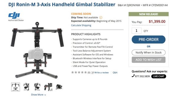 DJI Ronin-M Available for Pre-Orders at US$1,399