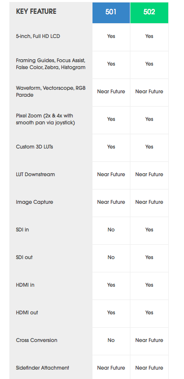 The 502 was one of the stand out products we saw at NAB 2015 and I am sure the 501 will also prove to be just as popular. While a lot of manafacturers have decided to make larger on-camera monitors I think going back to a smaller 5″ design is a much smarter option for today’s crop of smaller cameras and gimbals.