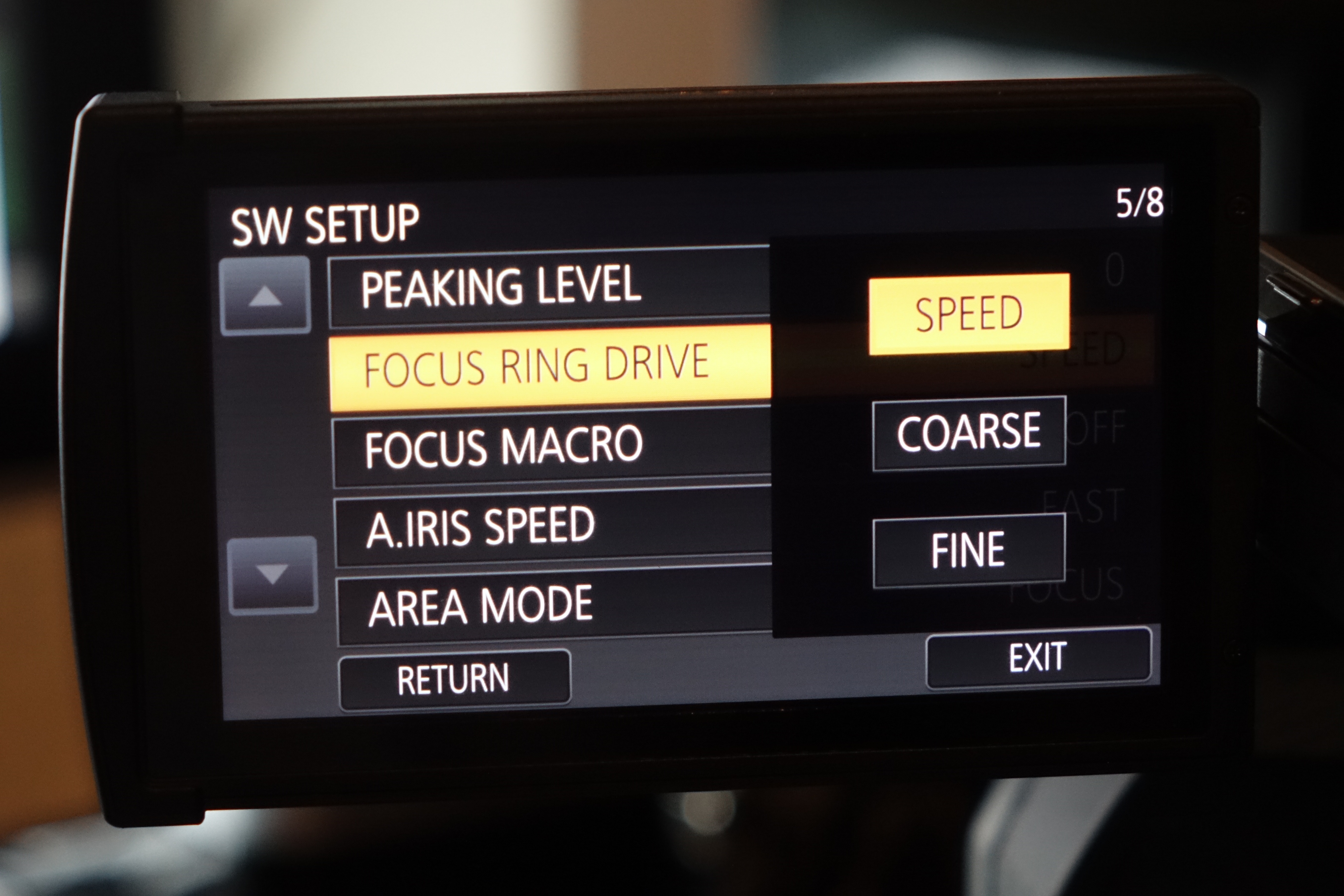 The mechanics of manual zoom, focus and iris rings are OK, but not perfect. They are not fully mechanical, but instead use a fly-by-wire system. For focus there are three different control settings you can choose from in the menu: