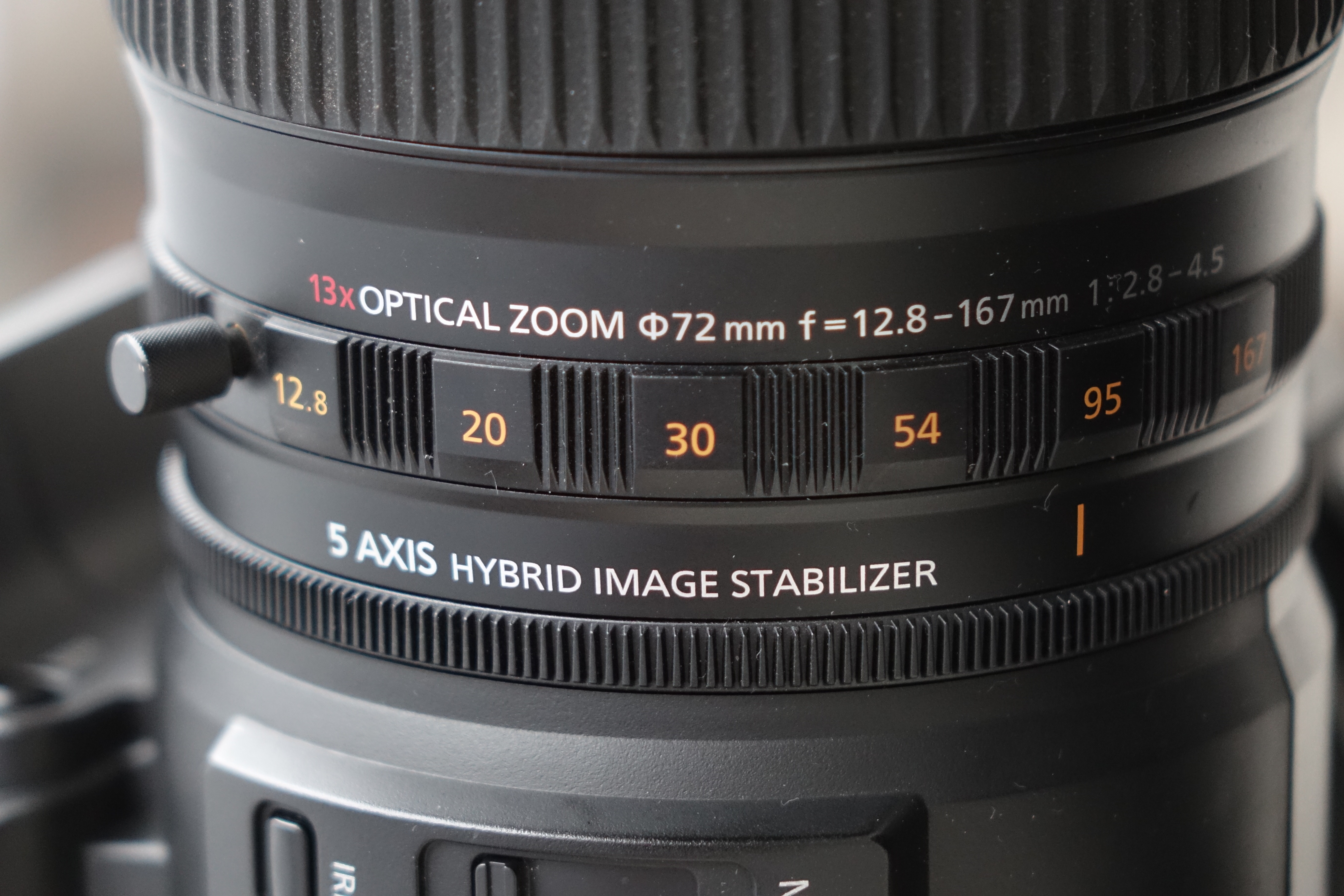 The Panasonic DVX 200 has a fixed LEICA DICOMAR 4K 13x servo zoom lens that has three rings for independent zoom, focus and iris control. The lens has a range of 12.8mm to 167mm (29.5 mm – 384.9 mm full frame 35mm equivalent in 4K 4096 x 2160, and 28mm – 365.3 mm in Full HD 1920×1080). This is a pretty wide range, but for me the lens is not really wide enough. I would have preferred a wider lens, even if that had meant losing some range at the longer end. I imagine that Panasonic, or third party makers like Zunow or Schneider will make a wide angle adapter for this lens in the future, but I would rather it was wider to begin with.