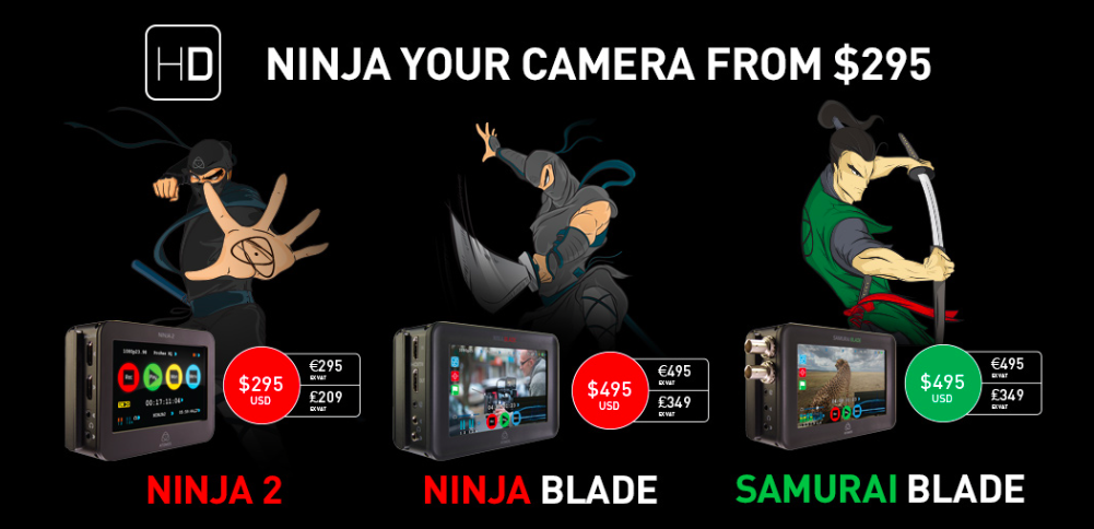 If your after a HD monitor/recorder there has never been a better time to buy. With the recent release of the Assassin and the industries push towards 4K, Atomos have dropped the prices on their HD monitor/recorders. The Ninja 2 price is now $295 US, down from $695 US and both the Ninja Blade and Samurai Blade have seen their price fall from $995 to $495.