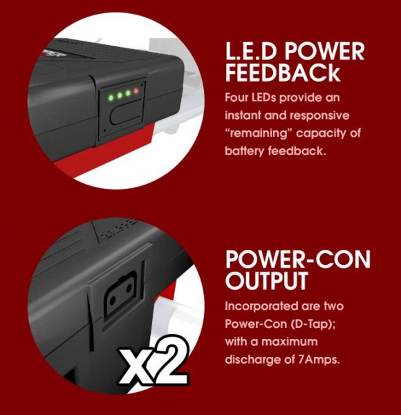 The Hawkwoods Gripper li-ion batteries series solve all these problems by doing away with extra plates. The batteries sit directly onto 15mm rods with no additional clamps or brackets. The casing is made of high impact ABS material. The batteries come in three capacities – 75Wh, 100Wh and 150Wh – and are relatively compact. Each has two D-tap connectors as standard and an LED fuel gauge that clearly shows the status of the battery.