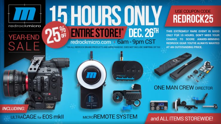 There are plenty of seasonal offers on at this time of the year, but today’s offer from Redrockmicro has to be one of the most generous. For today they are giving a massive 25% off absolutely everything in their store. The offer runs from 6am to 9pm Central Time today (the 26th December 2015) and includes several popular products like the One Man Crew Director and the microRemote follow focus system.
