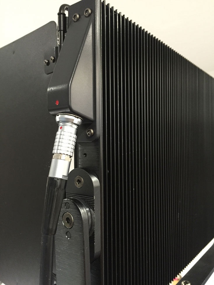 The Lemo connector on the side of the lamp is angled away from the body so it doesn’t foul on the yoke.