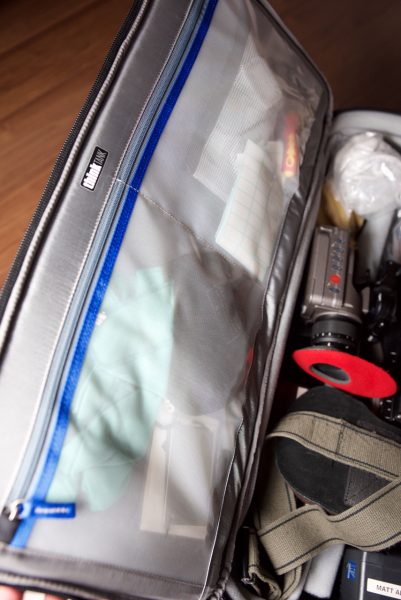 The whole top of the bag opens up and falls out of the way so that you have unobstructed access to your camera and accessories. This is something I don’t like about bags such as the Porta Brace. There is nothing worse than fumbling around trying to get your camera out and looking around for accessories. The Video Workhorse 25 allows me to keep my Arri Amira, fully assembled with a PL zoom as well as 5 V-lock batteries, media cards, card reader, portable light, smallHD 502 monitor, and a whole bunch of other accessories all ready to go at a moment’s notice. For day-to-day shooting I have the peace of mind that everything related to my camera is in one place. The only negative aspect of putting this much equipment in a bag is that it becomes very heavy and you really need to use it with a trolley.