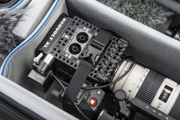 It’s very difficult to find a bag that will take a fully assembled large camera or a smaller camera that has been built up with a matte box, follow focus, EVF, monitor and a shoulder rig.
