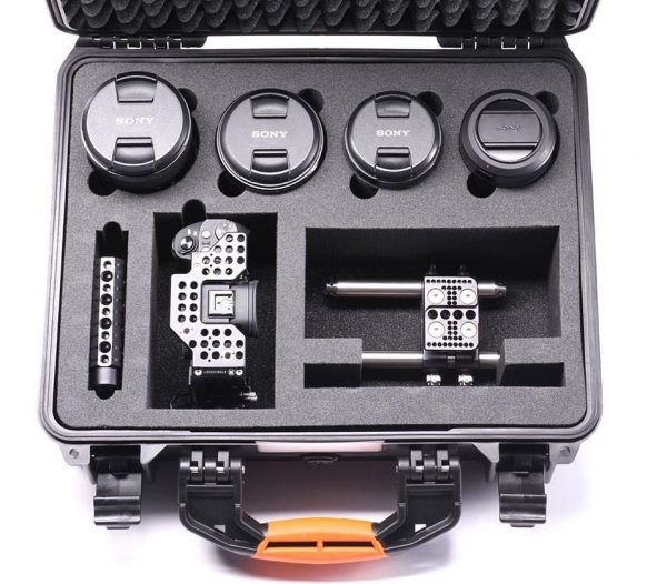The special version of the 2460 case has cutouts for the camera, a cage, an external recorder and several smaller lenses like the Zeiss Loxias.
