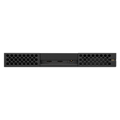 Two Thunderbolt 3 ports and a power jack. It's all aluminium but sadly there's also a tiny fan in there to help with cooling. No silent desktop for you, Speedy Gonzales.