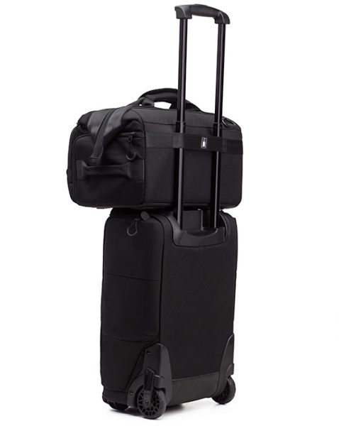 The shoulder straps are anti-slip and the handles are leather. The bags also have a trolley strap that allows them to piggyback on a larger rolling case. Something that I find very useful on my luggage when I travel.