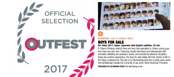 Boys for Sale will also screen at LGBT Film Festival Outfest 2017 LA on Wednesday, 12 July at 5pm in the Director’s Guild Of America (Theater 2). For further screenings and more information about the film visit our website – www.boysforsale.com.