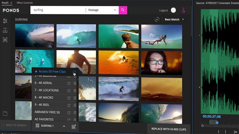 A download of the free Pond5 add-on for Adobe Premiere Pro comes with a free collection of 50 pre-selected clips (which Pond5 value at over $1,000 US) that users can try out in their projects to get started.