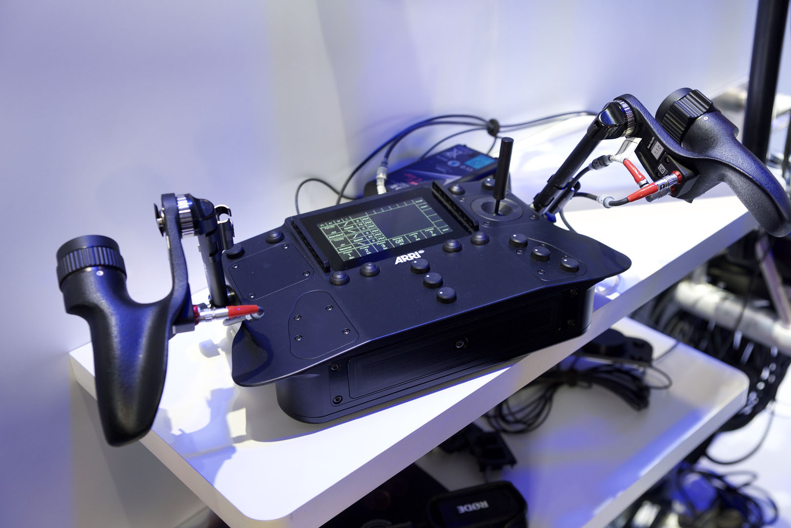 The Arri SRH-3 is controlled by a newly designed panel that can incorporate Arri Master Grips as well as a joystick. The control unit does double duty as a calibrator so there’s no need to connect a PC or other device to change settings. You can tweak control speeds on the fly using the touchscreen and also save presets to the control surfaces, which include optional wheels.