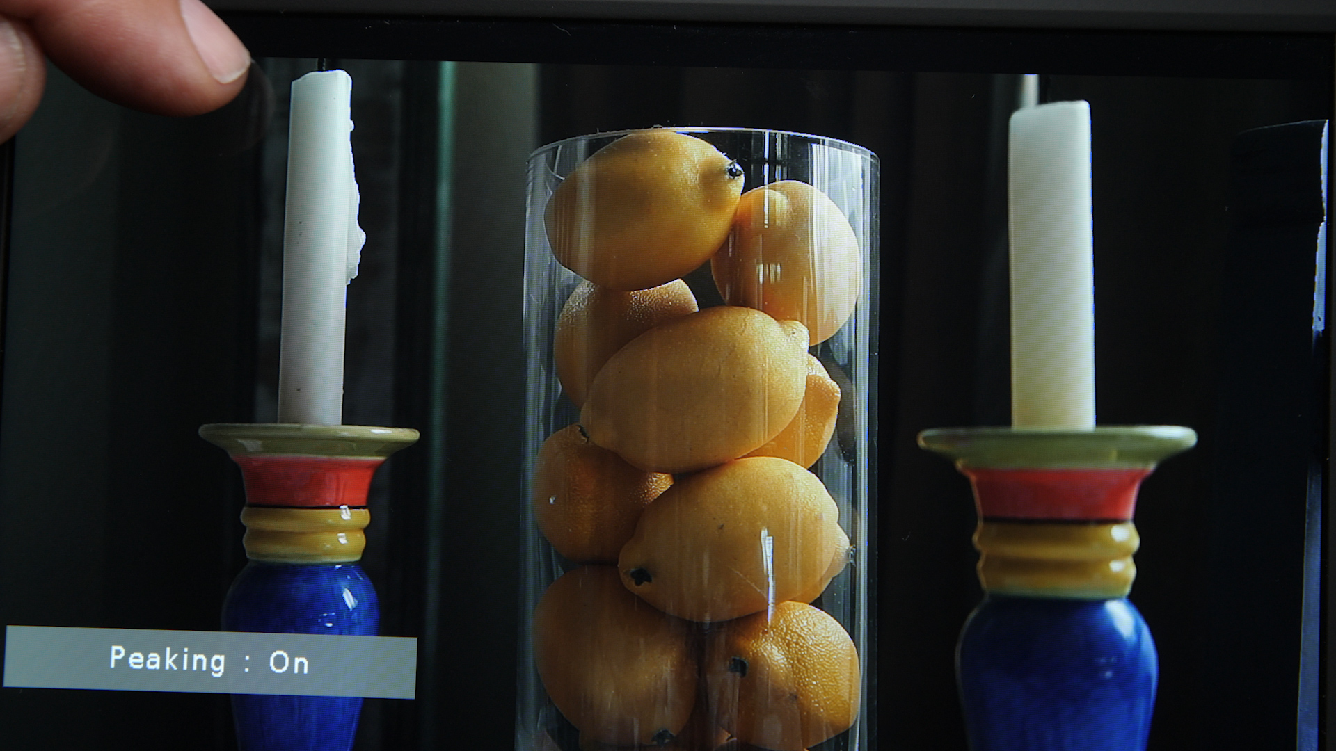 The Eclipse has Focus Peaking in blue. You can’t change the color. The peaking function is not aggressive so you can trust that the image is in focus. Zoom and Pixel to Pixel is also available to assist in focusing.