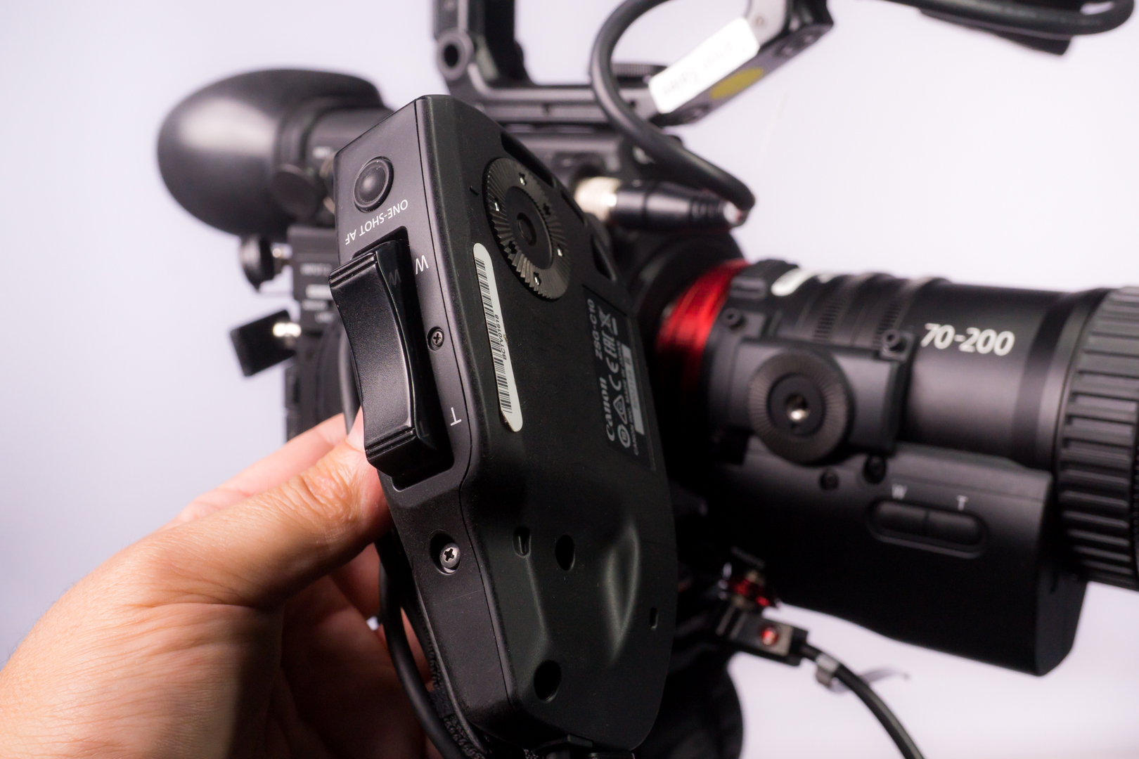 The Canon ZSG-C10 grip screws into the side of the lens with a rosette and can be adjusted to the users liking. The grip has a record and one shot AF button. When attached to the C200, the camera’s grip gets really close to the zoom’s grip so if you were going handheld in a rig, I would take the cameras grip off. Unfortunately, in this configuration, you would also lose the extra controls on the camera grip.