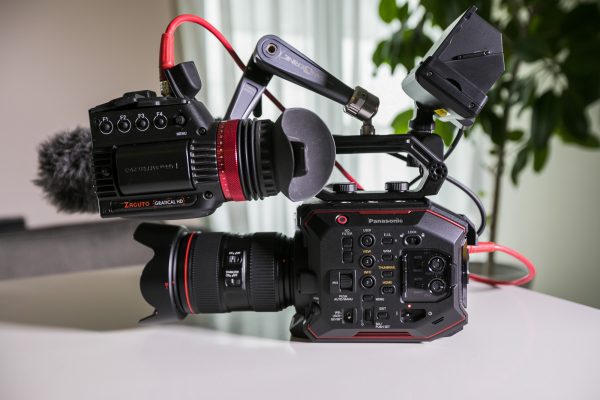 As mentioned in our hands-on review of the Panasonic AU-EVA1, the standard LCD monitor is pretty much unusable in bright outdoor conditions so adding a third party EVF like the Zacuto Gratical or a high bright monitor like the newly released SmallHD 502 Bright is pretty much essential. In the review, this type of battery is exactly what Matt was hoping to see from Panasonic or third parties and it looks like CoreSWX has listened. Being able to power the camera and accessories from a single battery keeps the camera package compact without and streamline.