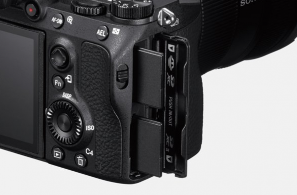 Dual media slots with one being UHS-II compatible allow simultaneously or relay record, separate RAW/JPEG data and stills/movies, and copy data between cards.