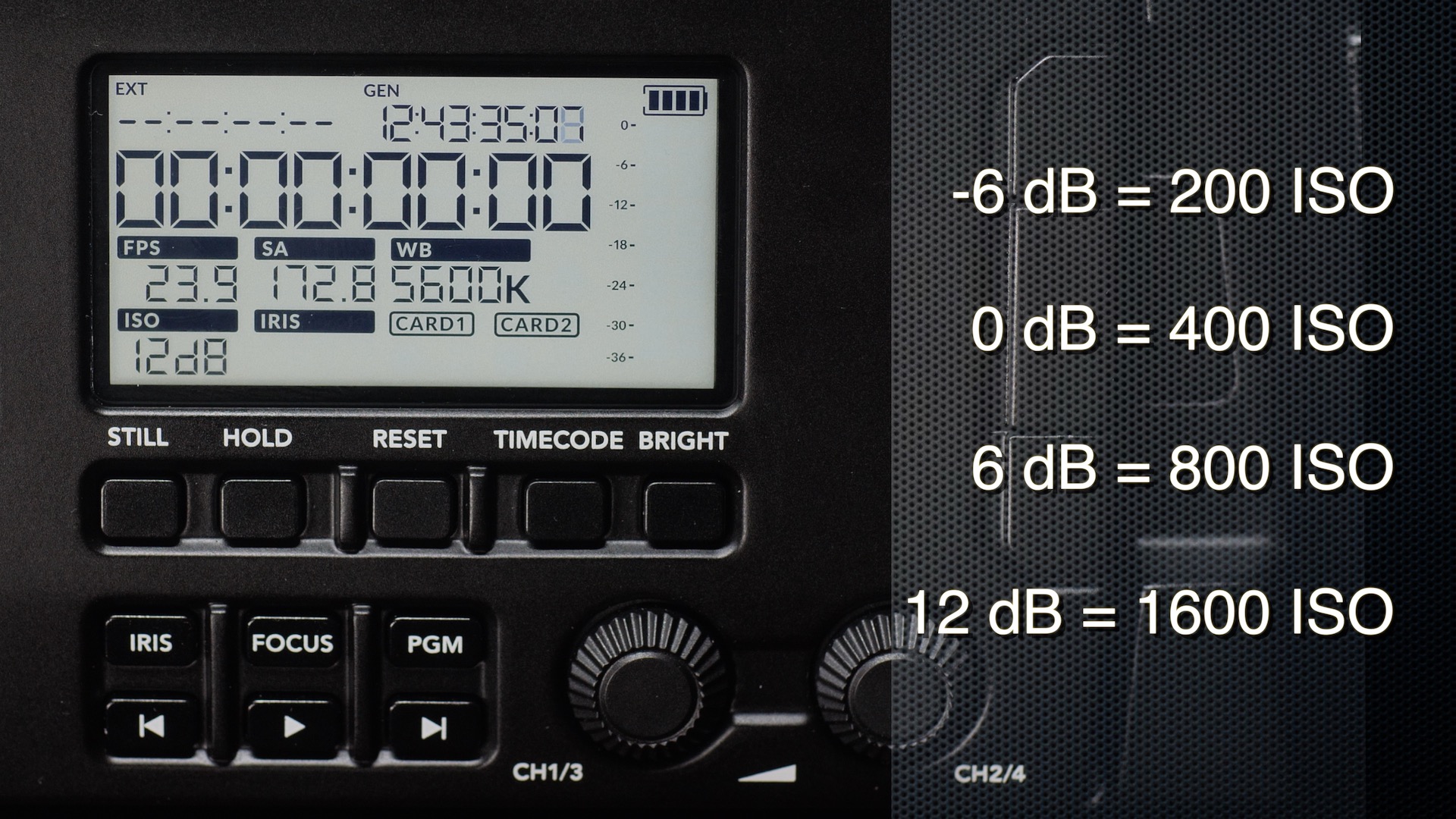 If you aren’t familiar with broadcast cameras then the gain settings can be a little confusing. Here are the values of dB gain to ISO for the URSA Broadcast camera.